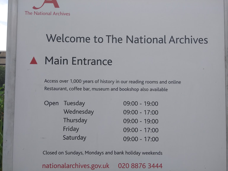 I set off early one Friday morning to Kew Station. Then walked the shortish distance to The National Archives (TNA).
