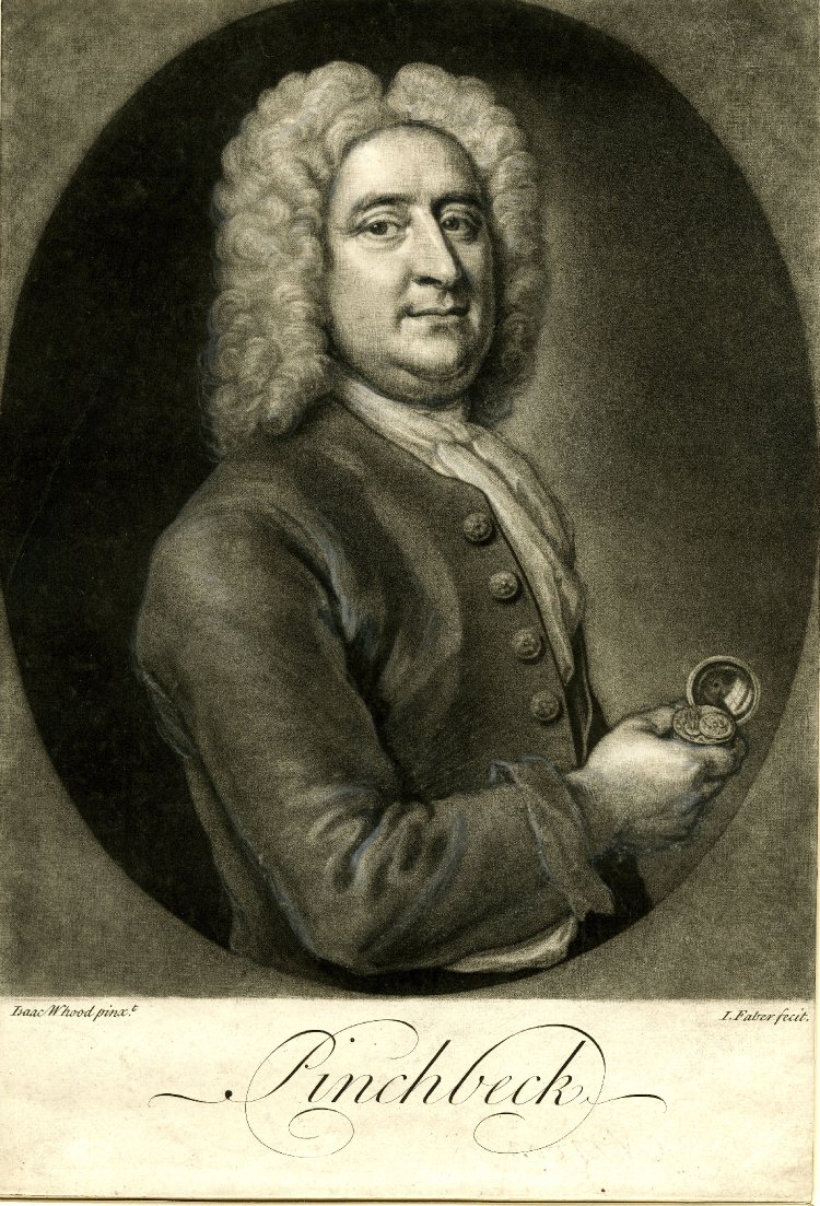 Christopher Pinchbeck b. 1650 , a watchmaker responsible for the invention of the Pinchbeck alloy, which was once used for imitating gold in cheap jewellery. The family specialised in complicated astronomical-musical clocks. He exhibited his clocks in various fairs and invented a metal with the appearance of gold. This, known as ‘Pinchbeck metal’ was an alloy of three parts zinc to four parts copper. Watch cases are frequently made of the metal. Edward Pinchbeck, second son, succeeded to his business and continued with complicated and musical clocks. The elder son, Christopher Pinchbeck, continued on his own and supplied a complicated astronomical clock to George III in 1765. This clock is still in Buckingham Palace. – yet to be proved as my family