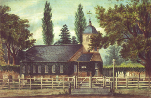 Weld Chapel was built around 1615, it was a wooden structure, enlarged and altered several times to accommodate the growing population of Southgate and it lasted until 1862 by which time there were several imposing houses and estates in the area owned by wealthy merchants and they wanted a more imposing church more suitable to the population. The Weld Chapel was demolished in 1863 and its site remains marked in the old churchyard outside the West Door of the church.