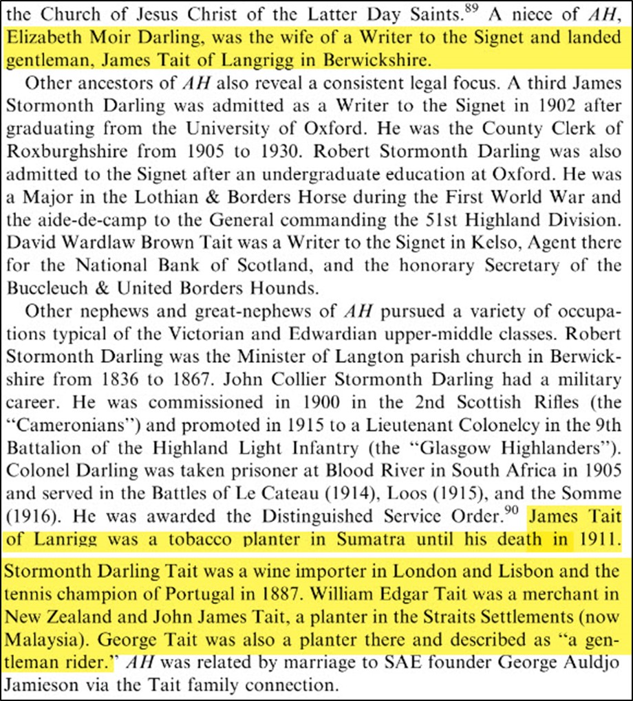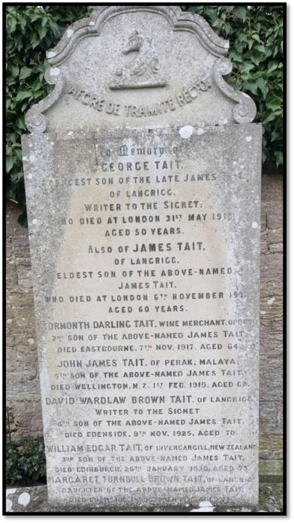 The others had left Scotland. Stormonth working as a Taster & Salesman living in London with William a merchant. James, John James and George in Far East, in “Seekers of Truth: The Scottish Founders of Modern Public Accountancy” history of the family. Not all families are listed in books this one was found using a simple Google search with name and place, confirming stories about Tait family.