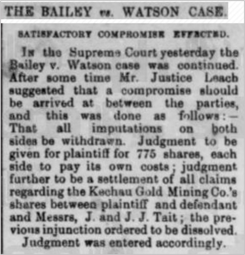 In 1901 John James and his brother James are involved in a court case about a gold mine investment “Kechau Gold Mining Co.’s shares between plaintiff and defendant and Messrs, J and J. J. Tait.