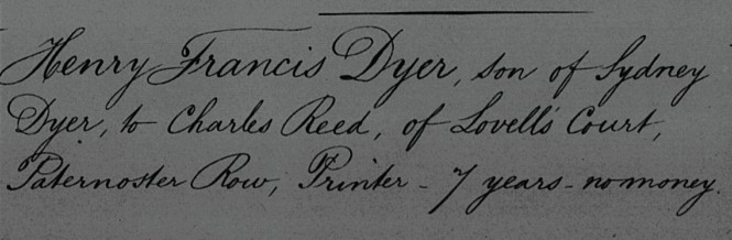 At age 14, Henry’s career path was set when he began a seven-year apprenticeship on 11th January 1859. He was apprenticed to Charles Reed at Lovell’s Court, Paternoster Row, an area famous for being the heart of the London publishing and book trade.