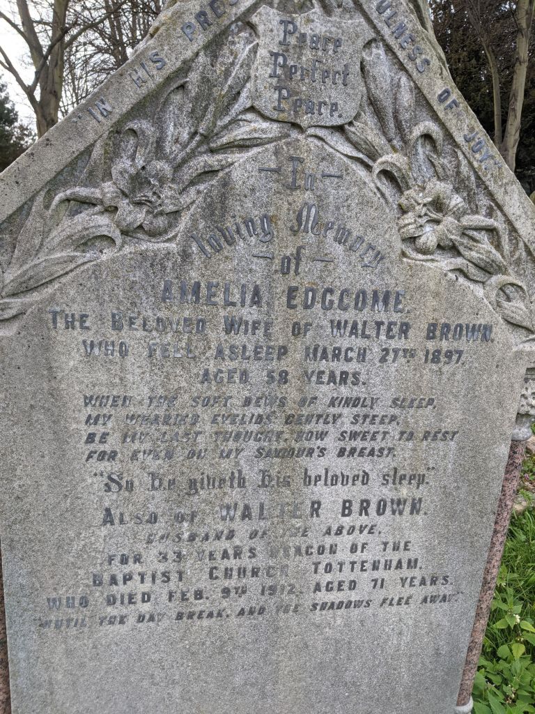Grave in Tottenham Cemetery (with wife Amelia)